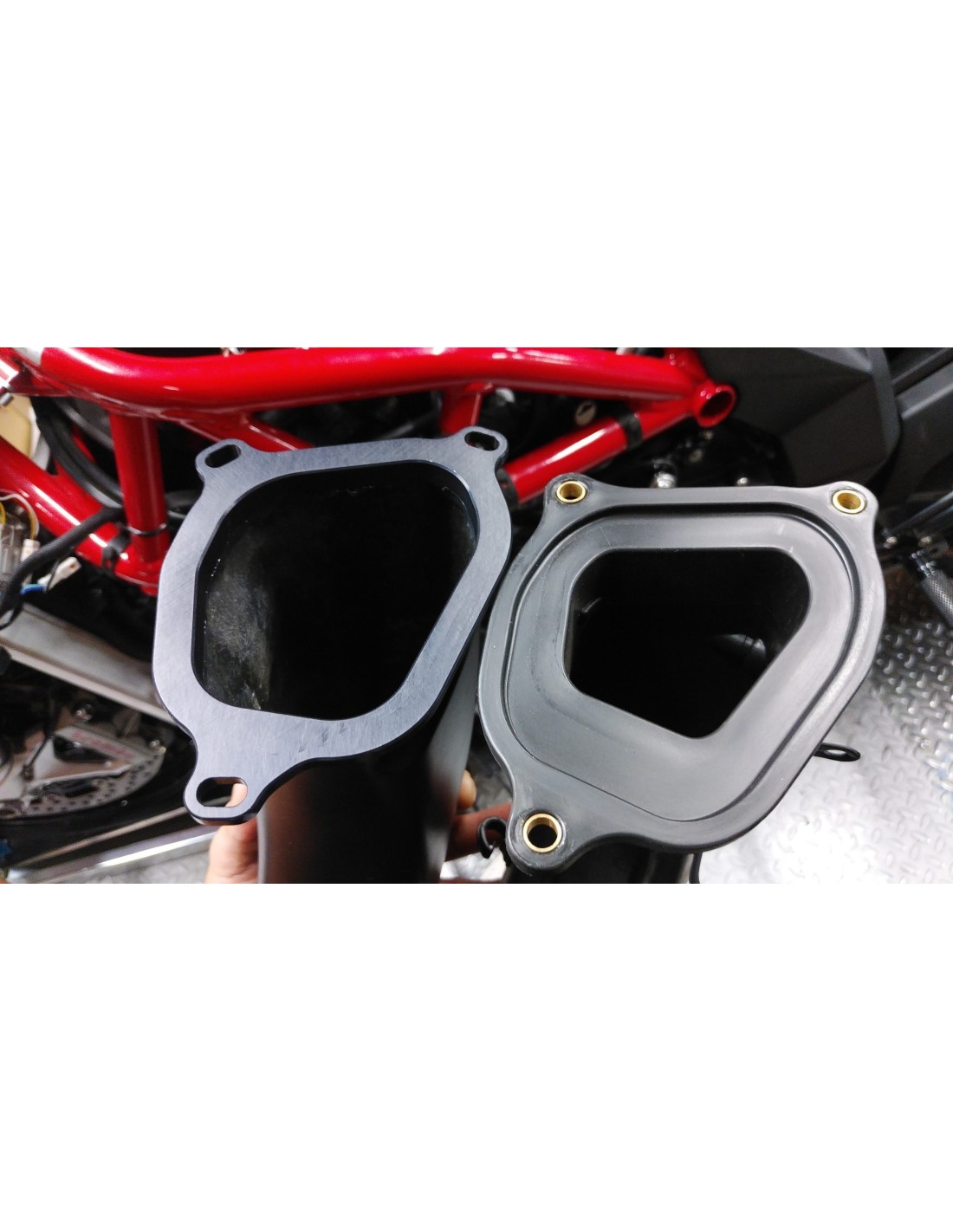 MWR XXL air ducts are developed to replace the highly restricted original air ducts, the pictures show the difference in opening resulting in much greater airflow and power
