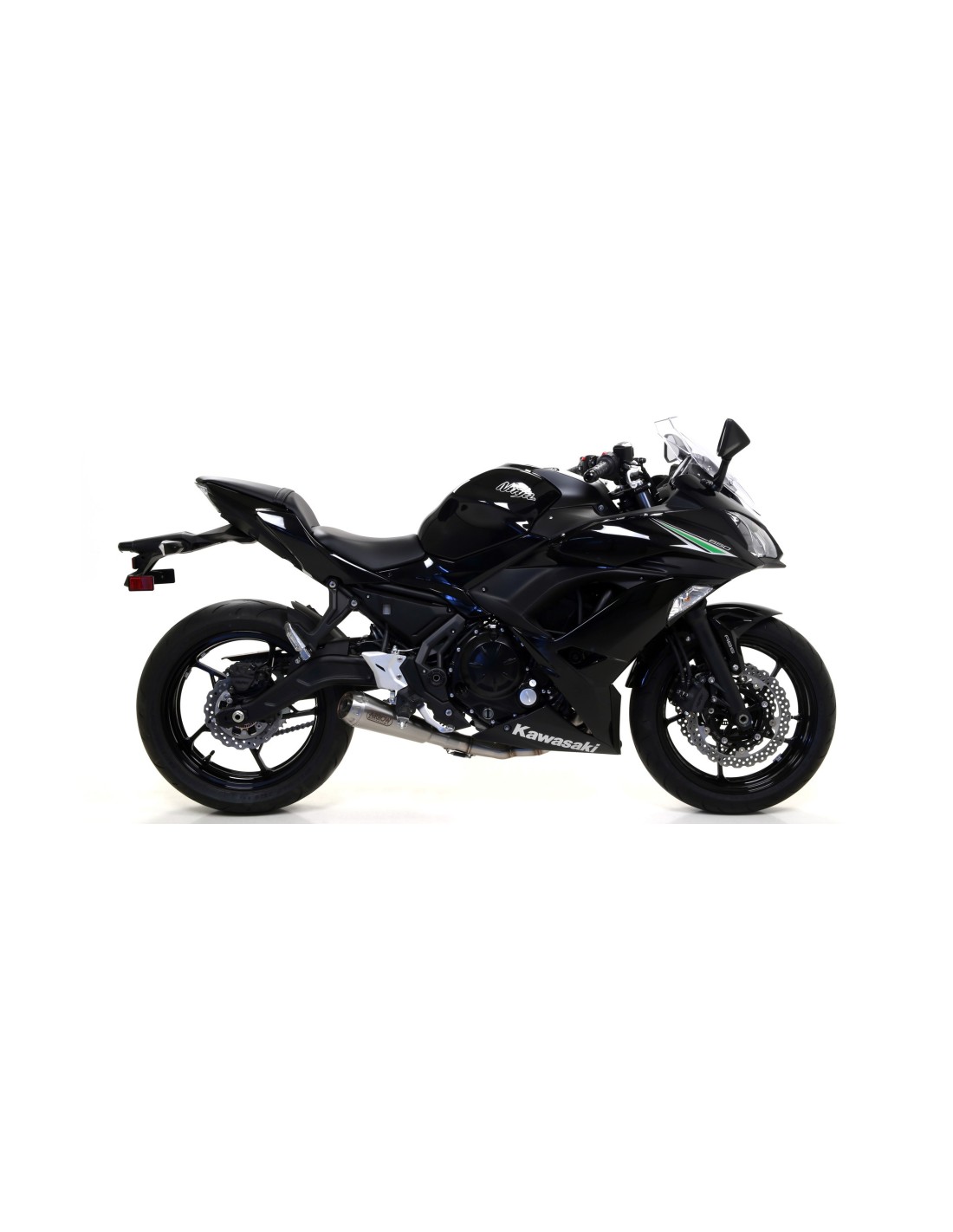 A new trend was born when trumpet-shaped silencers began to be used in Moto GP at the beginning of the year 2000. Due to constant customer demand, Arrow started working on this topic and as a result the Pro-Race line was born. A Pro-Race silencer is manufactured by assembling a piece of cone together with a final part made from a cylinder section (diameter 98mm). Due to the design of the silencers, in most cases it has not been possible to adapt the Pro-Race exhausts to all motorcycles and because the small internal volume limits keeping noise levels under control. In addition, due to their cone shape, Pro-Race silencers are attached to the frame with spot welds, so it is not possible to use a carbon or stainless steel clamp, as is done with regular body silencers. As usual, the assembly of the Pro-Race silencers is done with TIG welding technology. The Pro-racing silencers are available in an all-titanium version or in the new special stainless steel alloy (Nichrom), in a racing and homologated version. In 2017 it has been subjected to a restyling in which the terminal has been modified, now stamped, and the "Dark" finish has been added to the silencer.