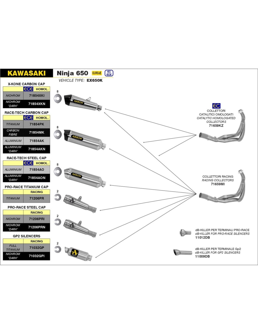 The Race-Tech silencer was the first diamond-shaped exhaust that in recent years has replaced the “old style” of traditional cylindrical or elliptical exhausts. The innovative shape of the diamond design allowed Arrow to reduce the dimensions of the traditional shape, while maintaining the same outlines. This allowed Arrow to reduce weight without affecting internal volume and to keep noise levels within acceptable limits without interfering with performance. The internal components of the silencers are produced in stainless steel and coupled with TIG welding technology. All the “wet” sections (those where gas flow occurs) are kept under strict dimensional control to optimize gas flow. A very important feature is the rear termination and the gas outlet: these components are designed to optimize the exit of the gas flow free of turbulence, reducing the negative effects of pressure. The Race-Tech line silencers are available in homologated versions for almost all motorcycles. These silencers are made of titanium, carbon fibre or aluminium. For some motorcycles, the titanium silencer is also available with the new carbon fibre finish.