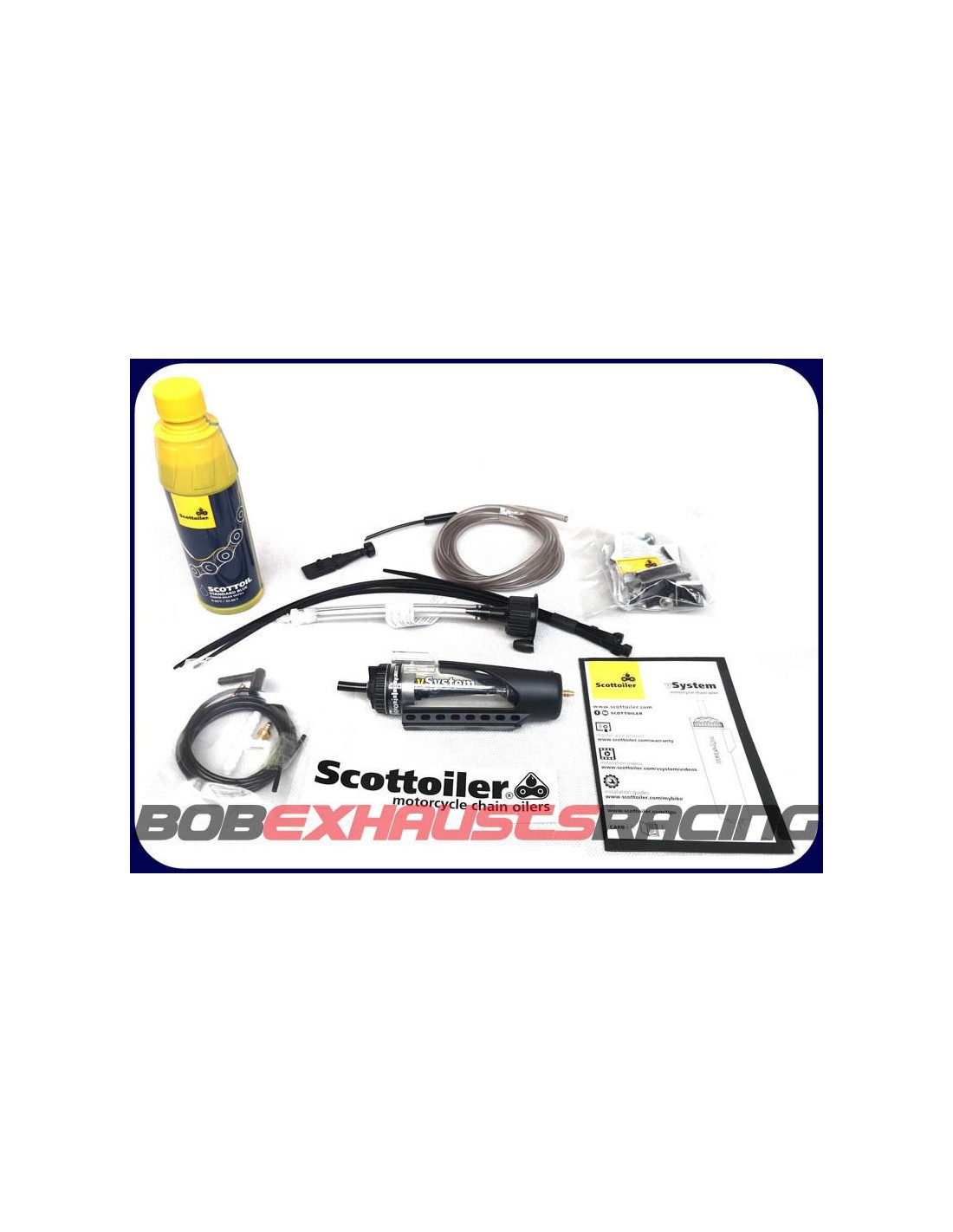 An automatic vacuum-controlled chain lubrication system. Chain life is increased by up to 7 times. The chain is virtually maintenance free and the maintenance effort is significantly reduced. The vSystem is easy to install and can be mounted on almost all models. The optimised system is tested in both summer and winter. The dispensing unit can be screwed or glued reliably with the Omega bracket under the swingarm. The standard tank is sufficient depending on the configuration for more than 1000 km. how does the Scottoiler work? The Scottoiler vSystem is vacuum-controlled. When the engine is running, a negative pressure is created. This lifts a diaphragm, which in turn opens the valve. While the valve is open, oil flows through the delivery hose into the chain due to gravity on the rear sprocket. The amount of oil is controlled by adjusting the valve. It is not a pump. Unique innovations - The needle valve and valve seat are now manufactured with even greater precision, ensuring even better dosing - The needle valve has changed profile, resulting in a uniform change in dosage. - The delivery hose has been changed, which makes bleeding much easier. - The RMV is designed in modern smoke grey. - The protective covers of the supply hose and vent hose are now black and therefore less sensitive - A practical refill with 250 ml content is included. - Illustrated instructions for easy cultivation. - Assembly instructions per model as download. The kit consists of a reservoir with valve (RMV) and an injector, which delivers the oil to the chain and sprocket. In addition, a 250 ml Scottoil bottle is included, sufficient for a distance of up to 10,000 km. Also included are various components that allow the kit to be assembled in different ways. - Extends the life of the chain by up to 7 times. - For all types of motorbikes including injectors. - Increases power up to 2 kW. - Maintenance free - Easy self-assembly. - For on-road and off-road use. - TÜV approved - Not subject to registration - 24 months warranty. - Detailed step-by-step installation instructions