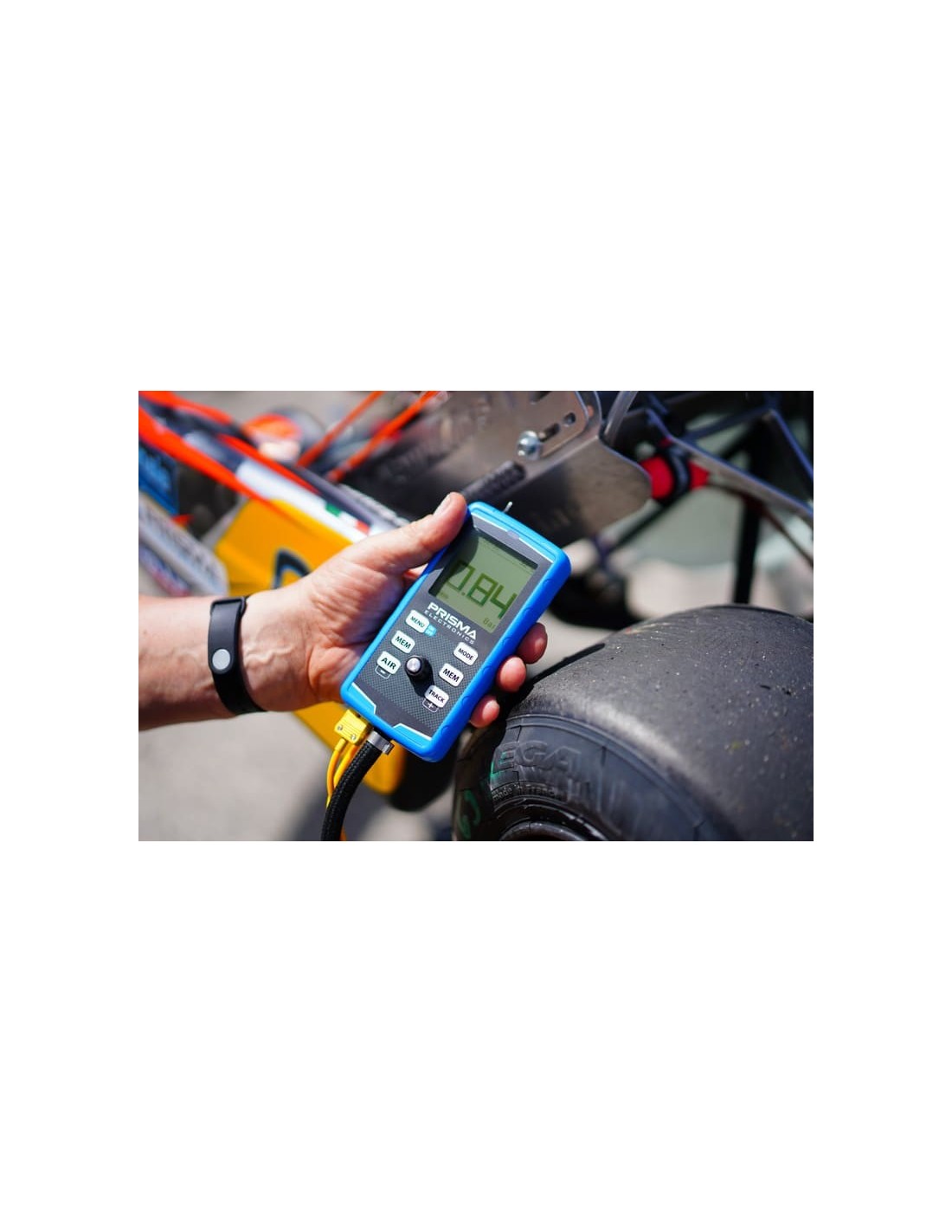 Prisma Electronics has developed a digital tyre pyrometer that measures and records tyre temperature at three key points: external, intermediate and internal.