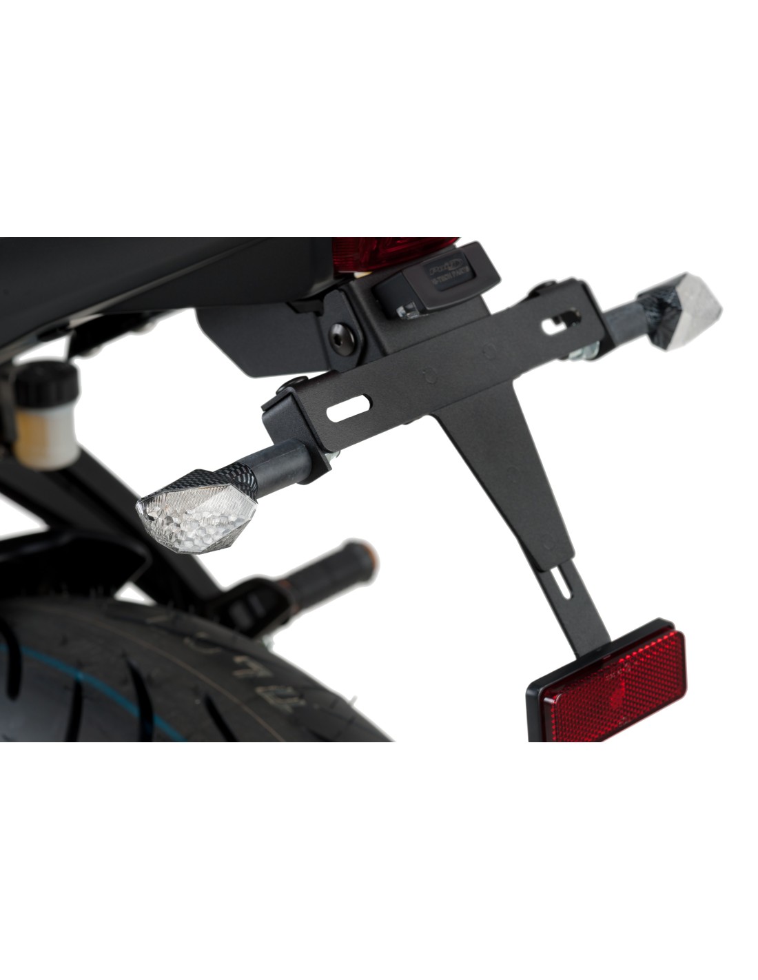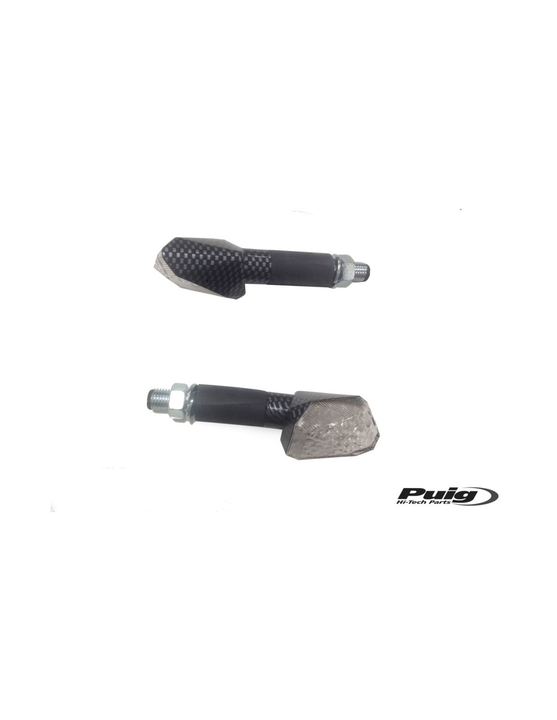 These are approved turn signals, with bold shapes and designs, reinforced by the carbon-like colour of the casing and the transparent glass, under which effective LED sets are hidden.