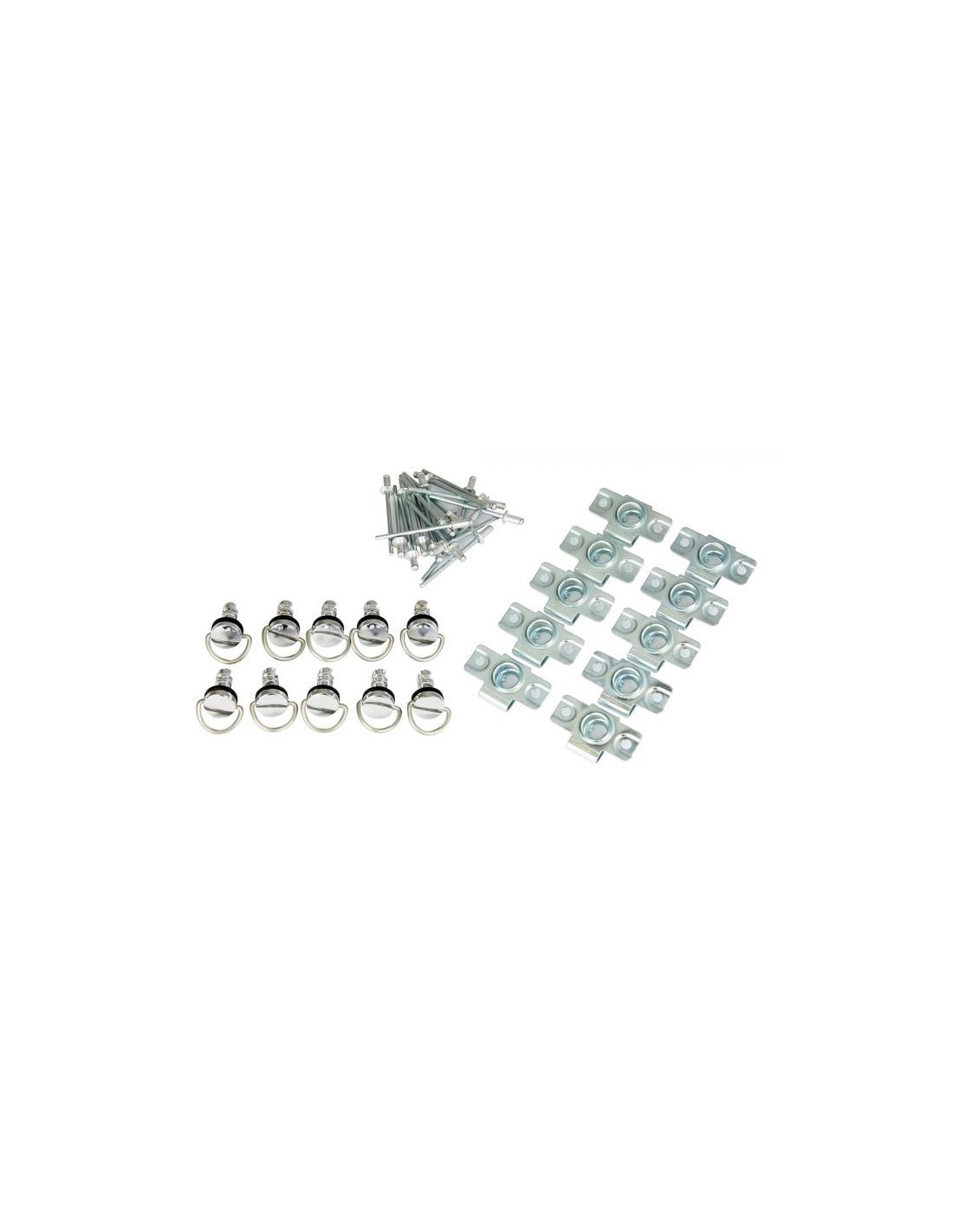 Quick screws kit for racing fairings Includes: 10 ring screws 10 plastic washers 10 staples 10 rivets Instructions