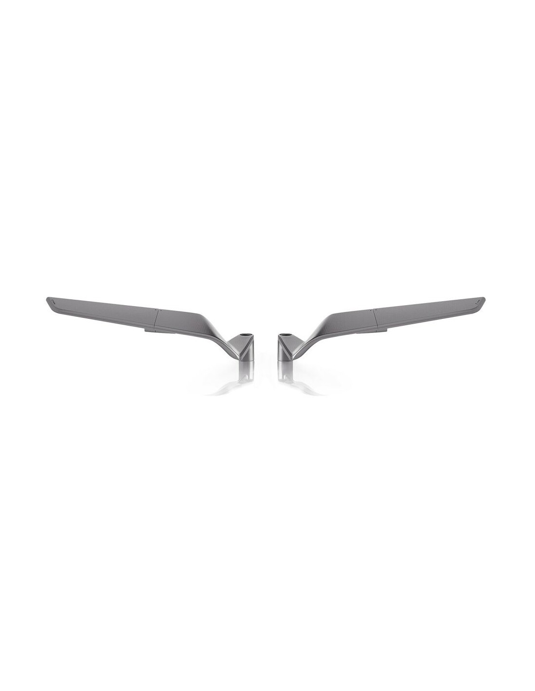 The rotating mechanism allows the two parts to be aligned with a simple gesture: when closed, the mirror works like an aerodynamic wing.