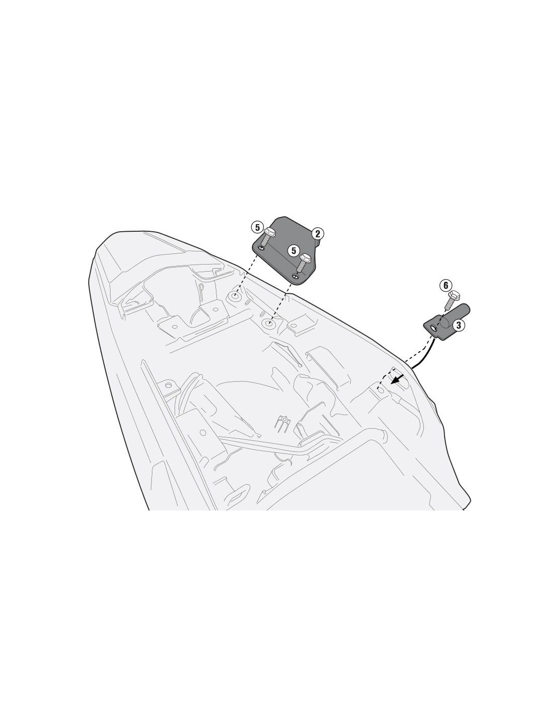 Specific kit for mounting PLX1171, PLO1171MK, PLO1171CAM and PLO1171N side pannier racks without the 1121FZ or SR1171 top case accessory.