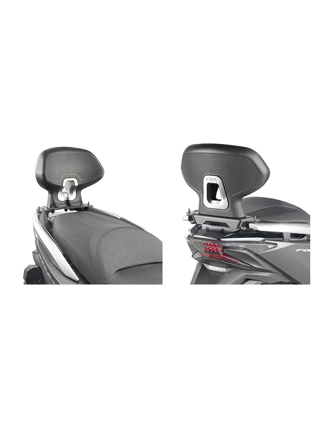 Specific passenger backrest. The mounting does not allow for the attachment of luggage racks or panniers.