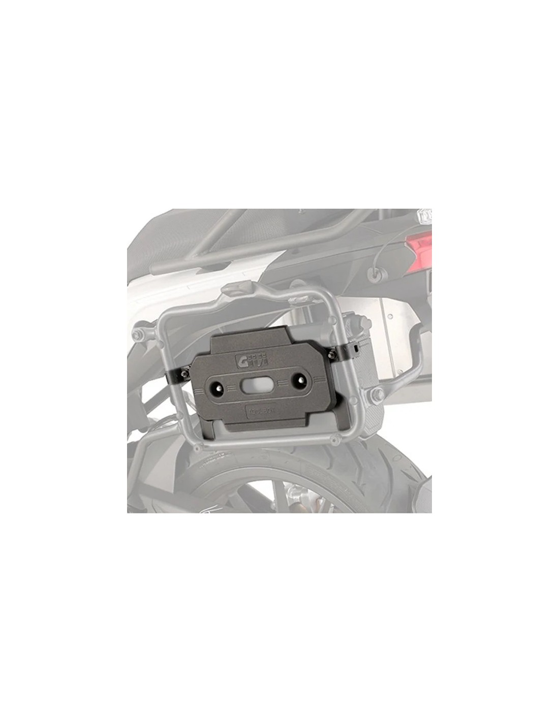 Specific mounting kit for attaching the S250 toolbox to the PL1121 side pannier rack, compatible with the S250 and the PL1121 side pannier rack. It can be mounted on either the right or left side of the motorcycle.