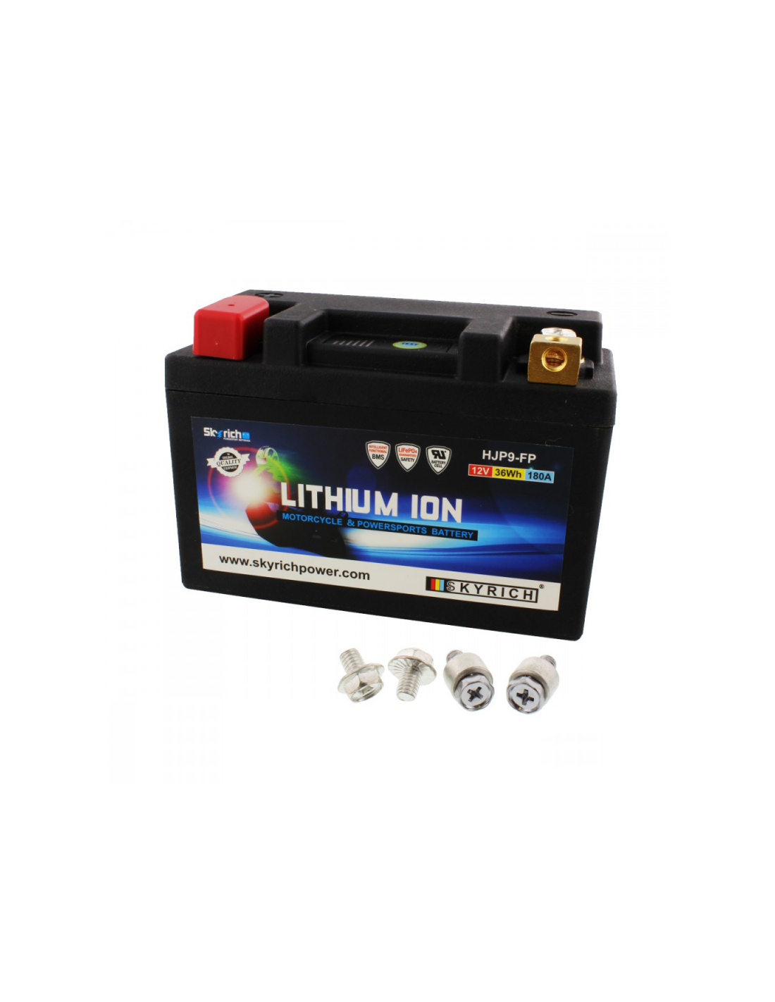 Characteristics: Compatible with YT7B-BS, YTX9B-BS. 134 x 65 x 92 mm 0,80 kg 12V 3 Ah Starting power180A. Waterproof Reminder that you need a battery charger compatible with lithium batteries or you could damage the battery Generic image