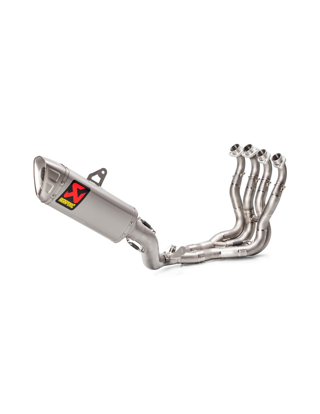 This high-end complete system, crafted with an exquisite finish from high-quality, ultra-lightweight titanium, is the lightest Akrapovič complete exhaust system, weighing just 4.4 kg, 57% less than the stock system.