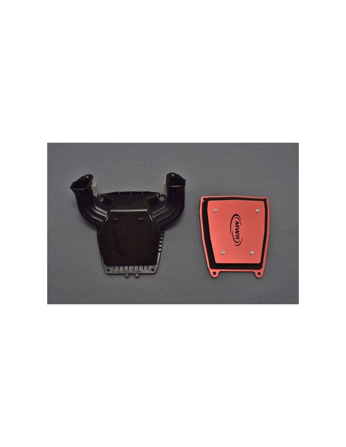 Filter replaces stock air box cover to create larger opening for increased airflow/power (see pictures)