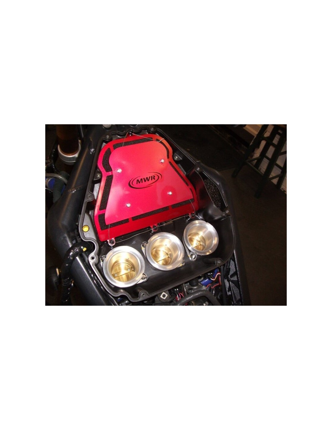 The MWR High Efficiency Air Filter for road and racing bikes. The aim of this revolutionary design is to reduce intake noise and, even more, increase power. This design has proven a reduction of up to 8 db compared to other sport bike filters.