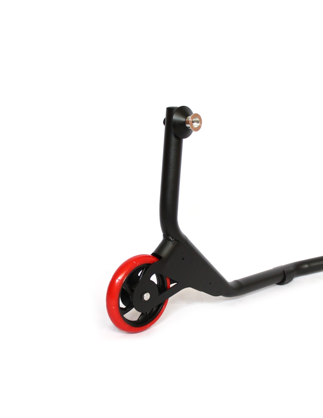 The Race Endurance rear stand is made of steel and painted with a special long-lasting textured powder coating. It incorporates two VMC wheels.