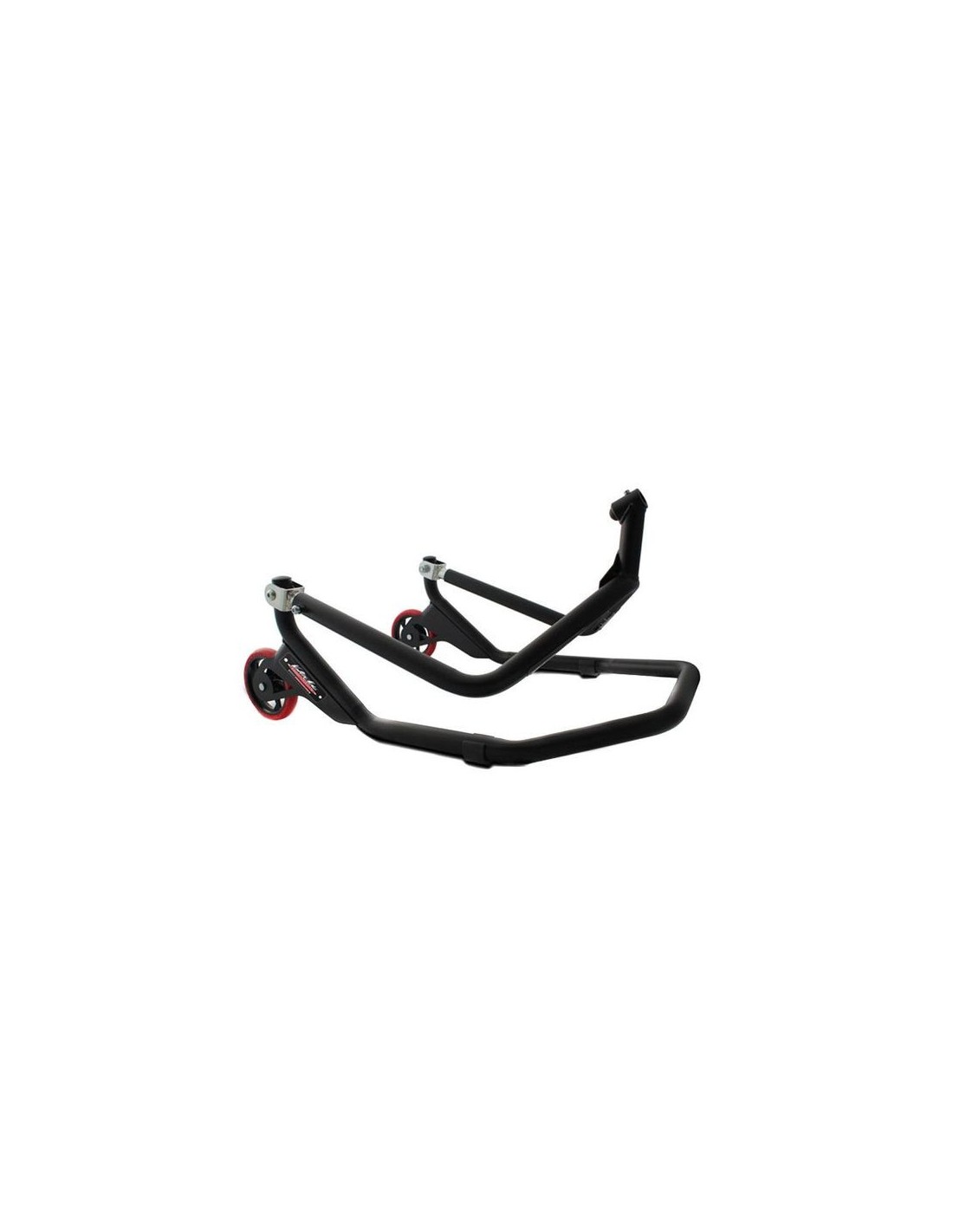 Head lift front stand Head lift adapters not included, must be acquired separately Made in steel with side reinforcements Adjustable height Black with red wheels Made in Italy