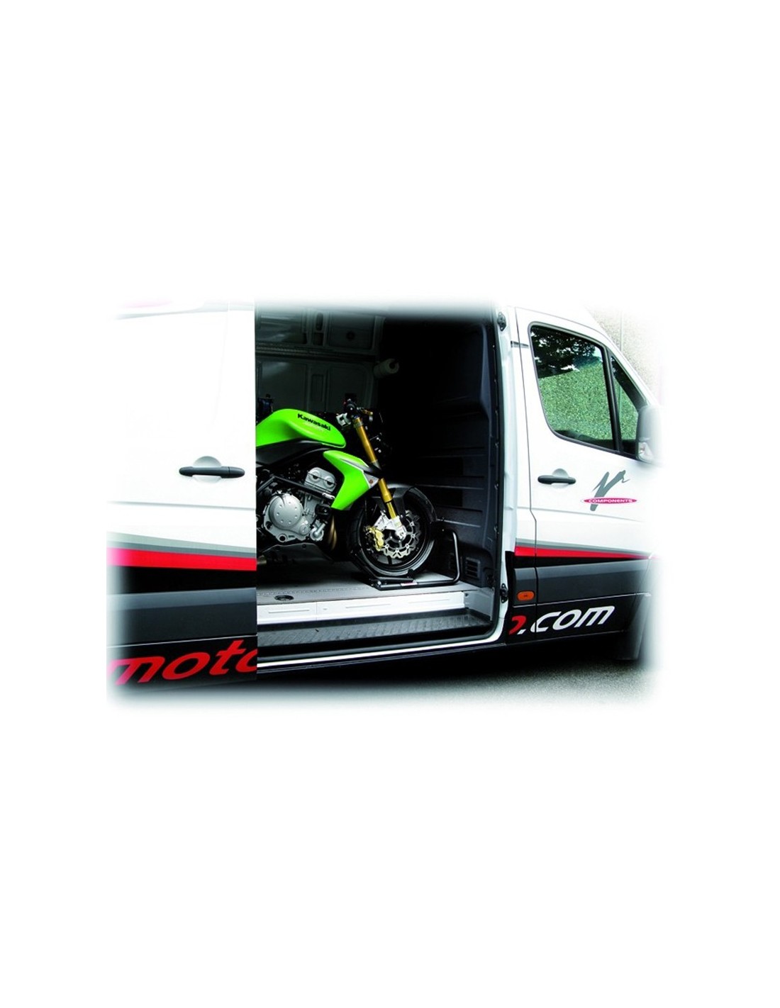 The VMC transport stand is essential for easily loading your motorcycle into a van.