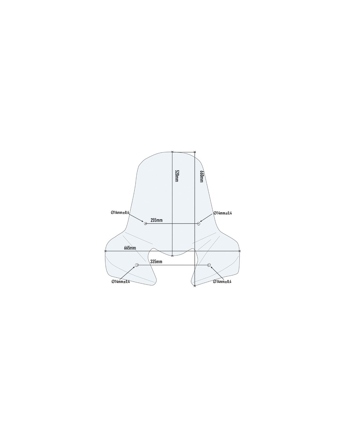 Specific transparent windshield with silkscreen printing measuring 52 x 66.5 cm (height x width) to be combined with A1100A fittings