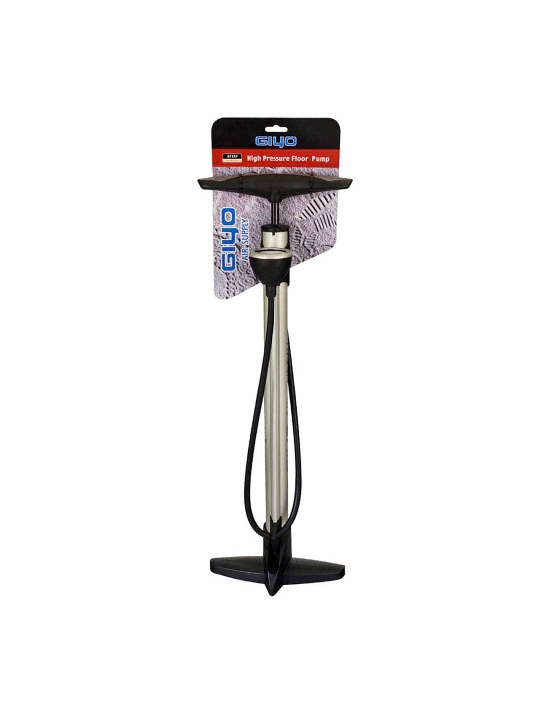 Floor pump 160 psi (11 bar). 38 mm diameter steel tube. Pressure gauge. Valid for Presta and Schrader valves (thin and thick). Double density comfort handle.
