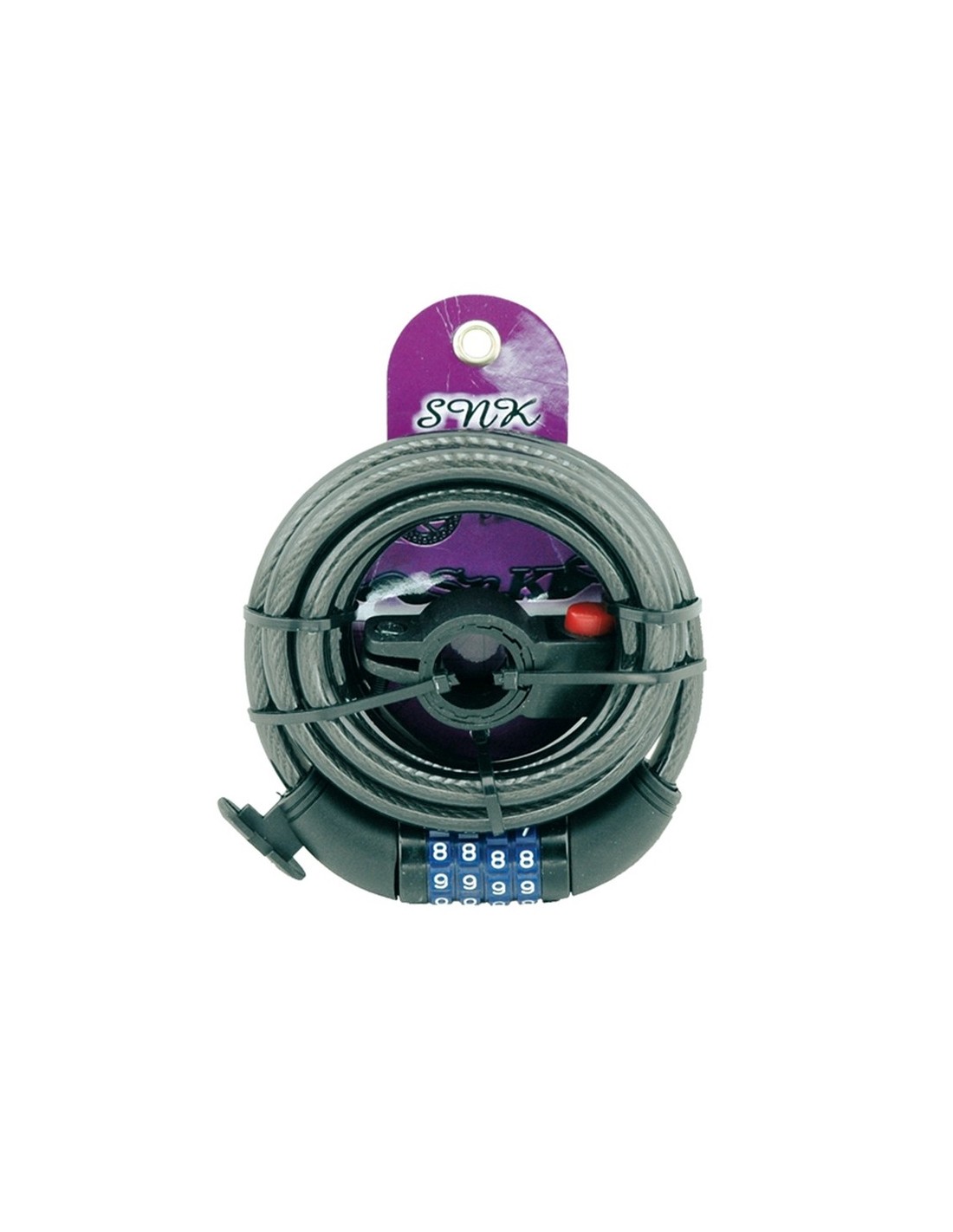 Spiral padlock with support. Combination: 4 digits. Attachment to the seatpost or frame. Ø8mm steel cable. Length 150 cm.