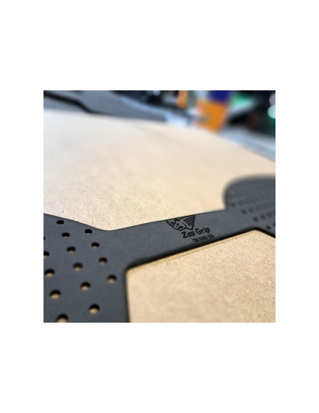 The placement should be done with the fuel tank clean, degreased and dry, it is recommended to start the gluing by the central part and continue on one side after the other, the correct position will be about 5mm from the top corner of the tank, the adhesive is sensitive to pressure, once placed press hard for proper anchoring, in case of having to change / remove the grip of the tank, the removal of the adhesive should be done with plenty of alcohol, and rubbing with a cloth dampened in it, no other product removes better the remains of the adhesive of the fuel tank.